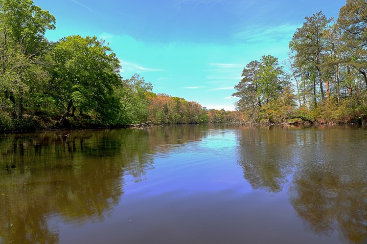 This location provides views of the Broadcreek with wooded areas in the backdrop.
