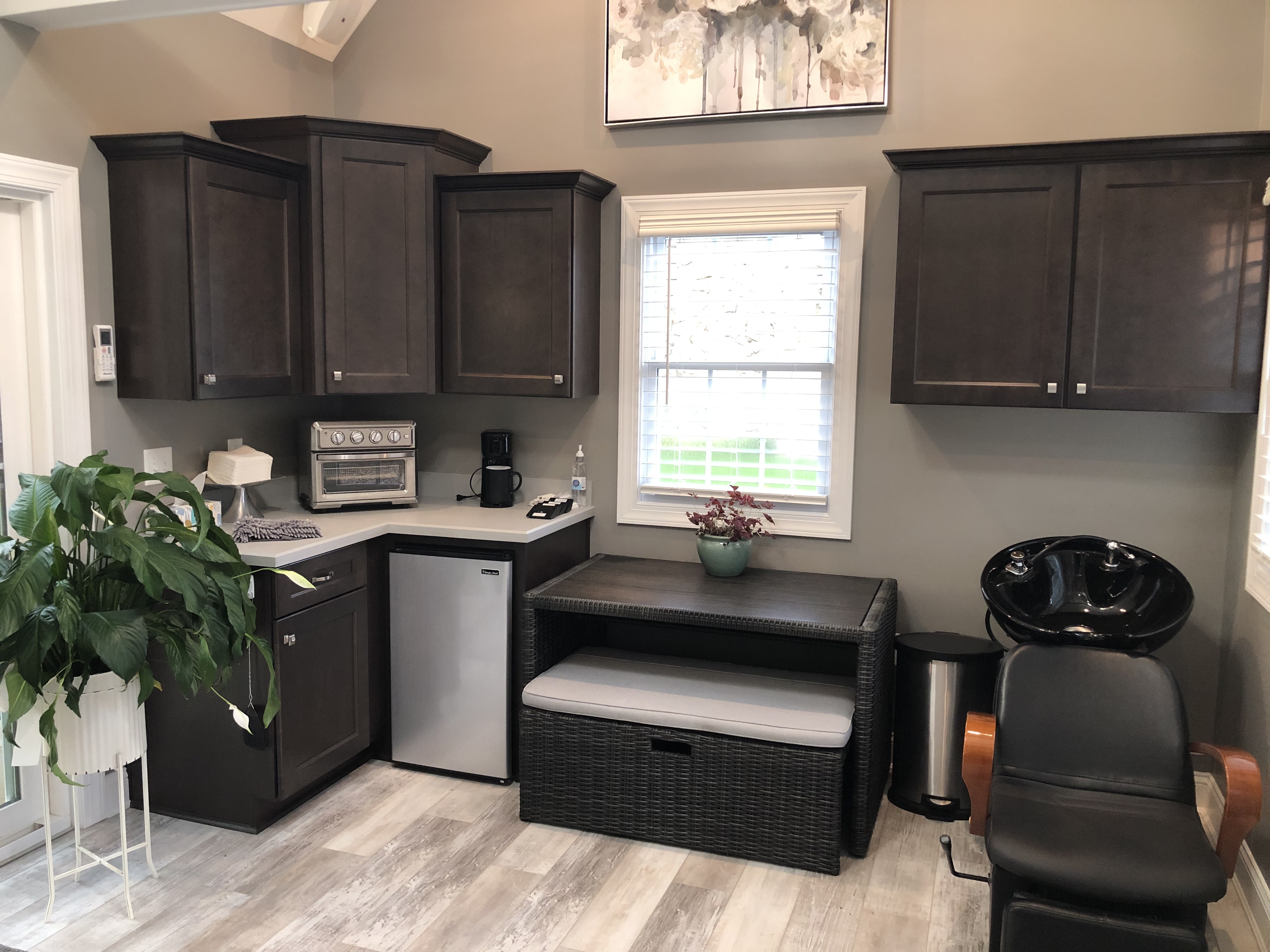 Cypress Creek offers the unique experience of having a Beauty Salon right on the property for your convenience. Having your stylists on the property makes doing your hair and makeup an ease. Our adorable little “she shed” includes a Bluetooth enabled sound system providing music inside and outside, a full bathroom, mini fridge and a single-serve Keurig coffeemaker.