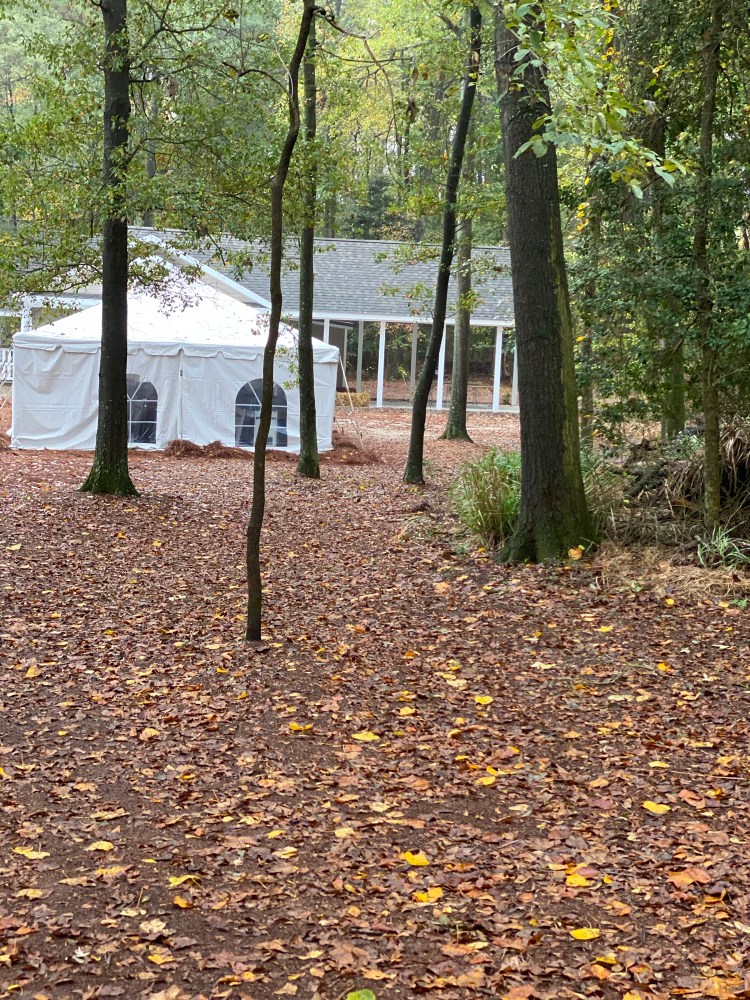 Our small, covered pavilion can be used creatively as a small wedding site, reception area, dance floor, a bar area or a small rehearsal dinner. A large tent can be extended to create a larger reception area or a wedding-in-the-round.